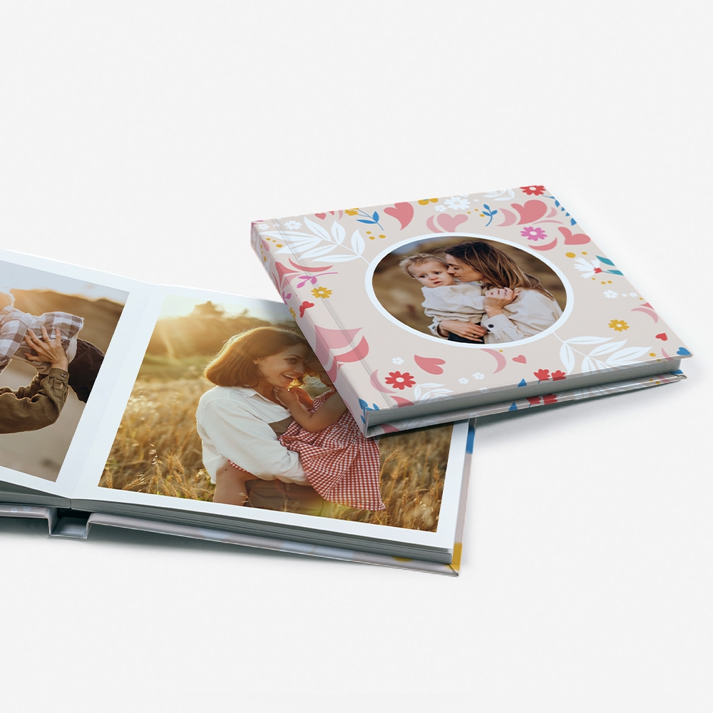 A capa rígida em cartão duro oferece proteção adicional e um acabamento elegante ao teu álbum.